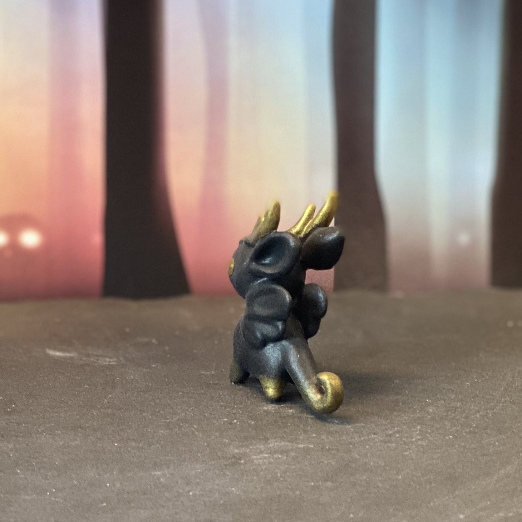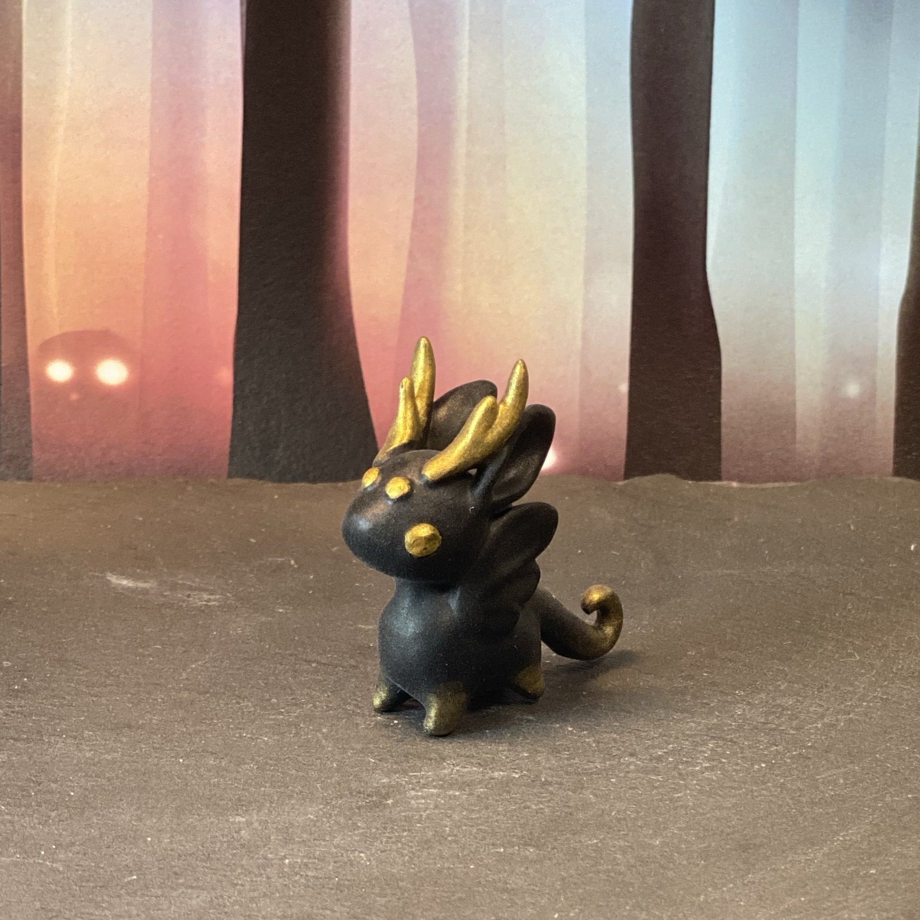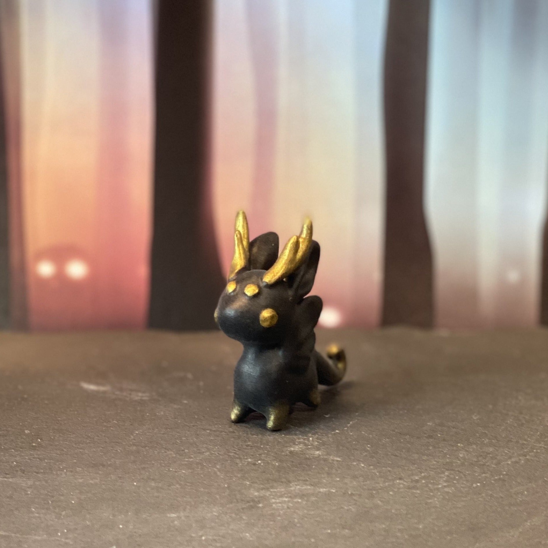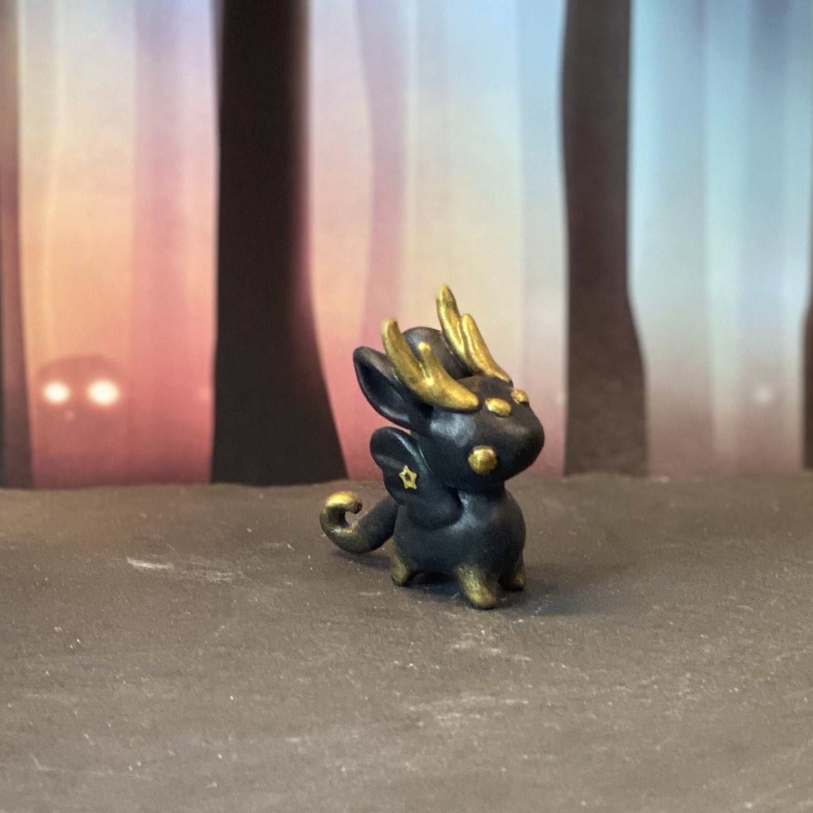 This Dragon Bun Bun is made out of 3D printed resin from a sculpt I made in Monster Clay. Its hand painted with Acrylic paints and either sprayed or painted with a sealant to protect the paint.