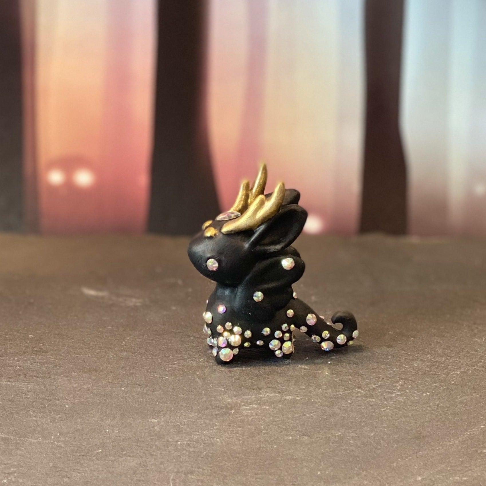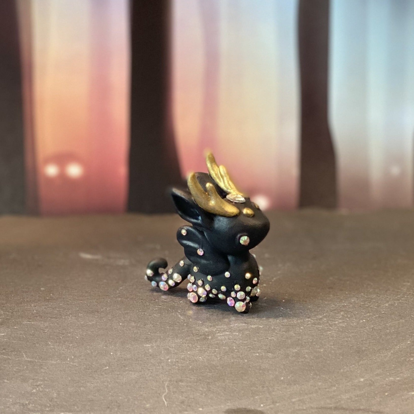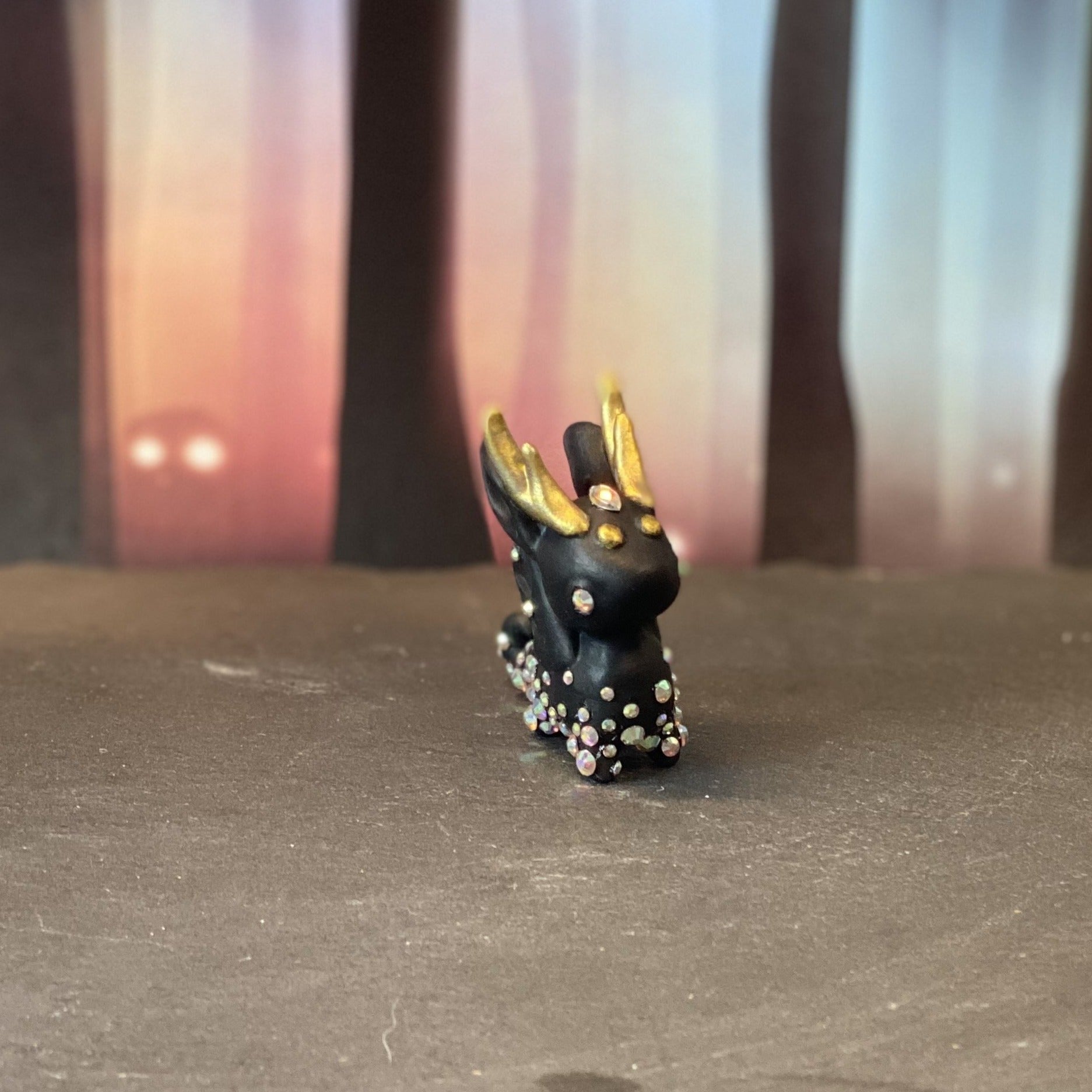 This Dragon Bun Bun is made out of 3D printed resin from a sculpt I made in Monster Clay. Its hand painted with Acrylic paints and either sprayed or painted with a sealant to protect the paint.