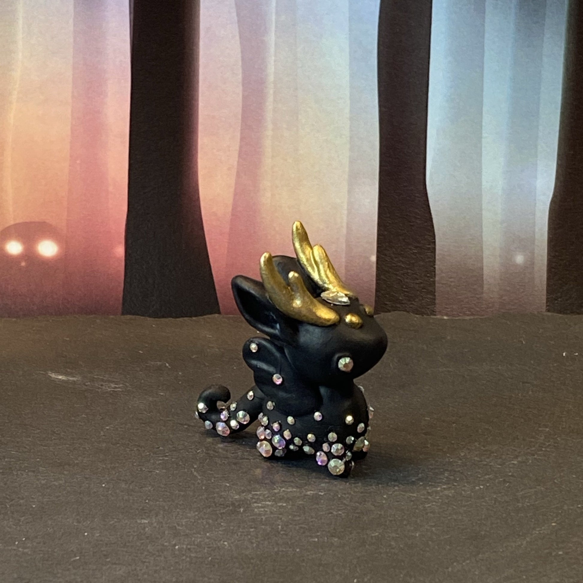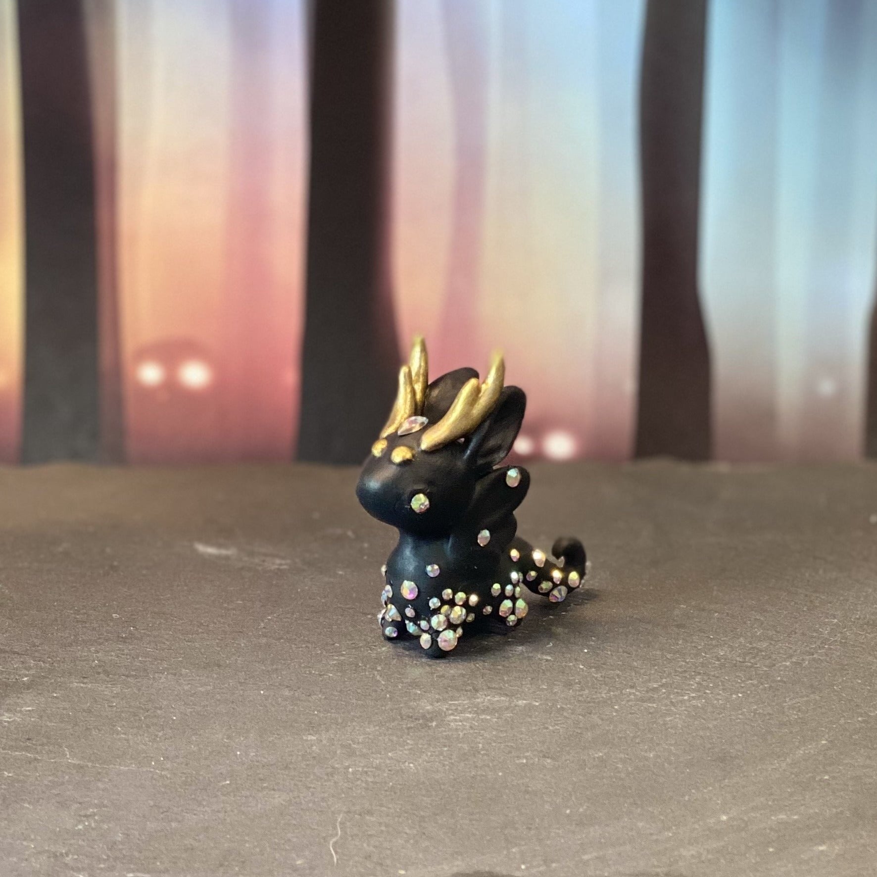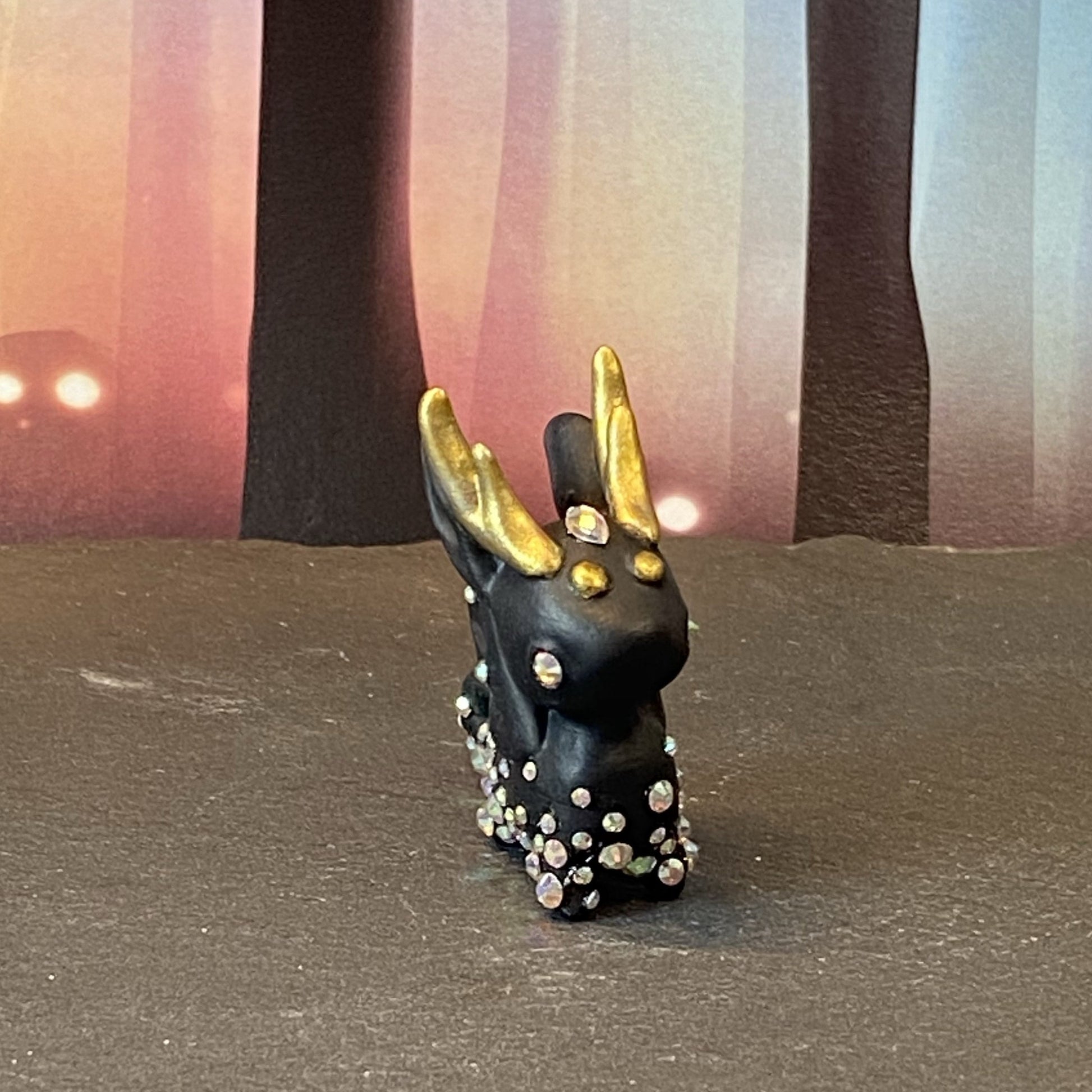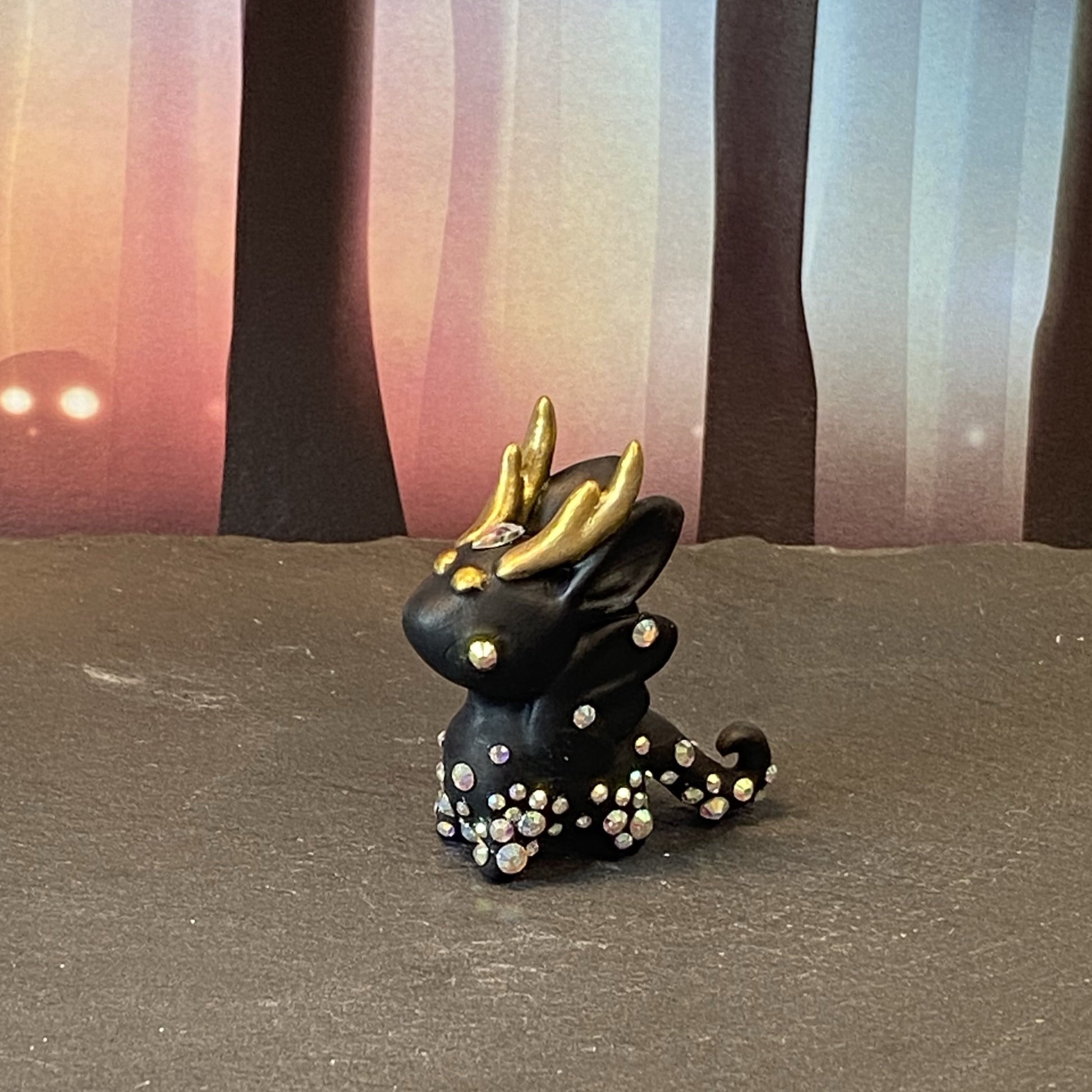 This Dragon Bun Bun is made out of 3D printed resin from a sculpt I made in Monster Clay. Its hand painted with Acrylic paints and either sprayed or painted with a sealant to protect the paint.