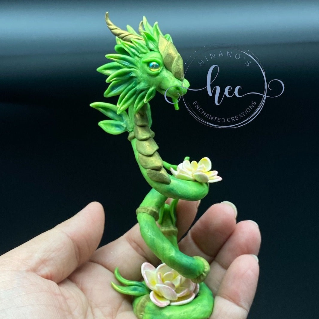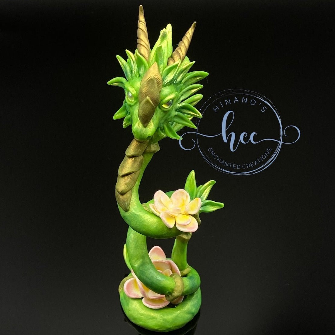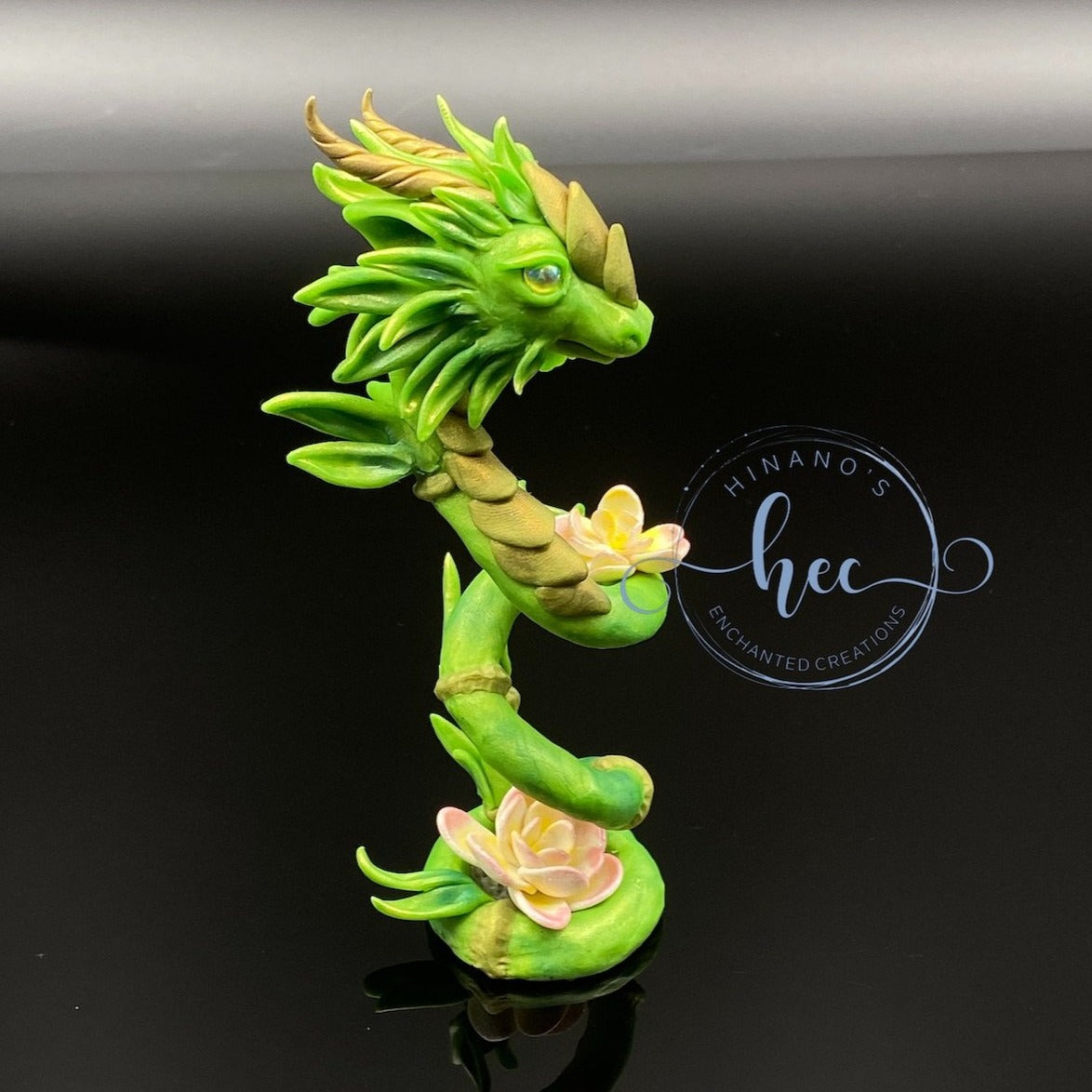 Lucky Emperor Bamboo Dragon. Not only does he give you luck, but he helps to guard your dreams! Sculpted in Sculpey Premo Polymer Clay with AB czech glass cabachons for eyes.