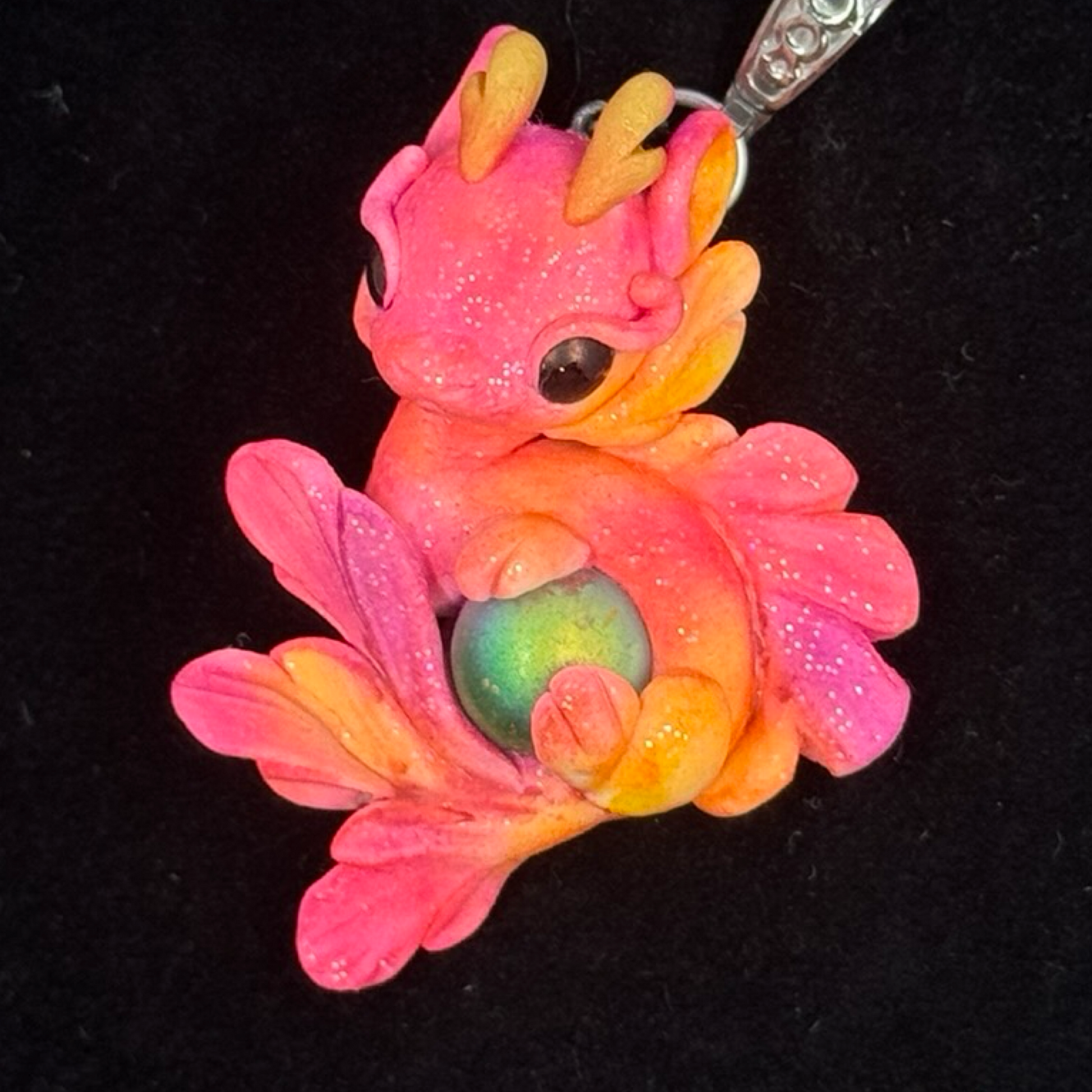 Neon Pink, Orange and Yellow Baby Dragon Pendant