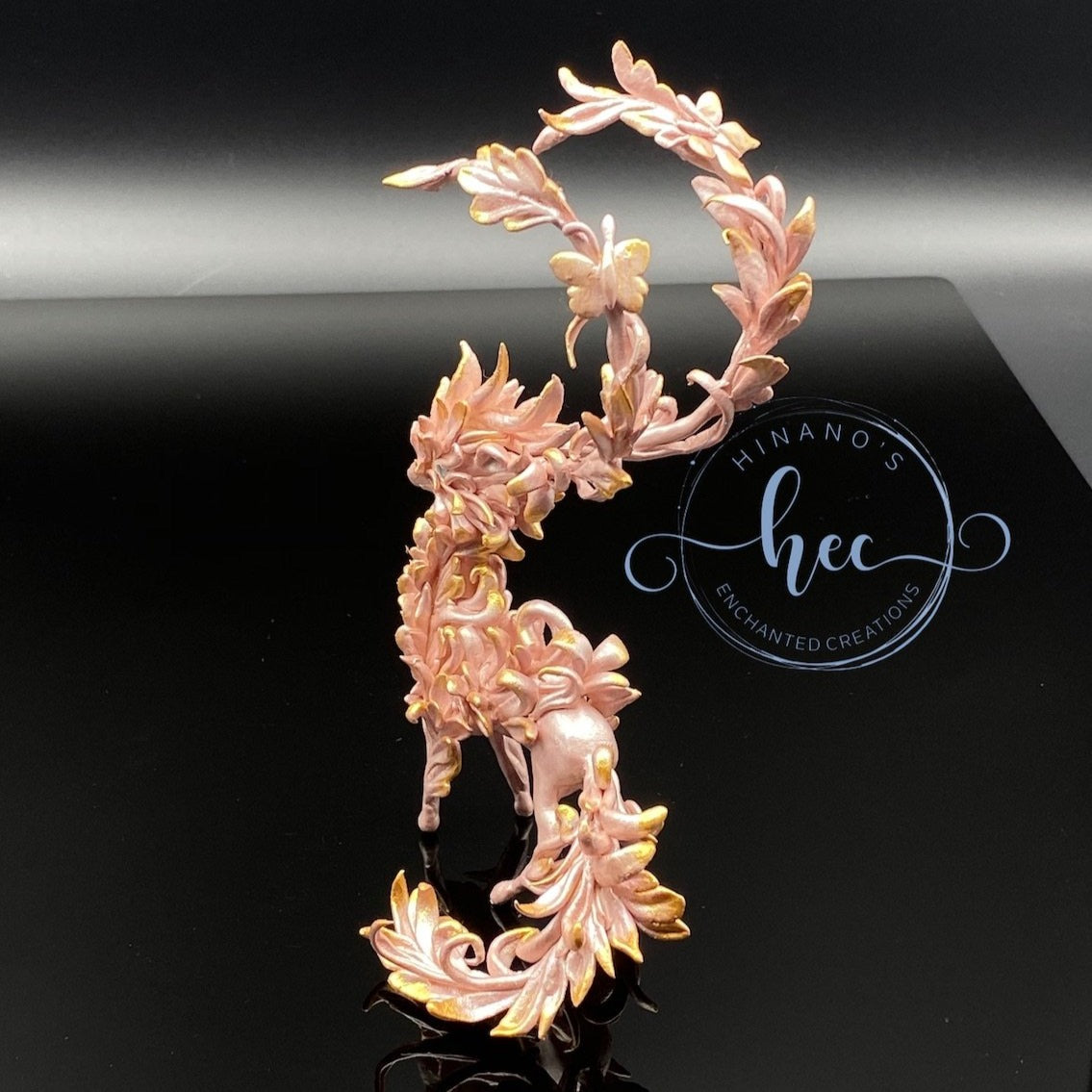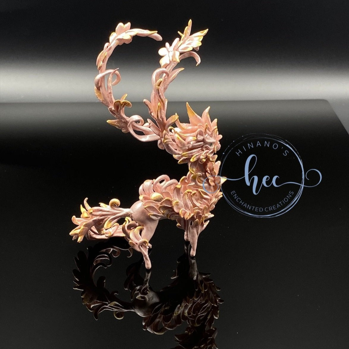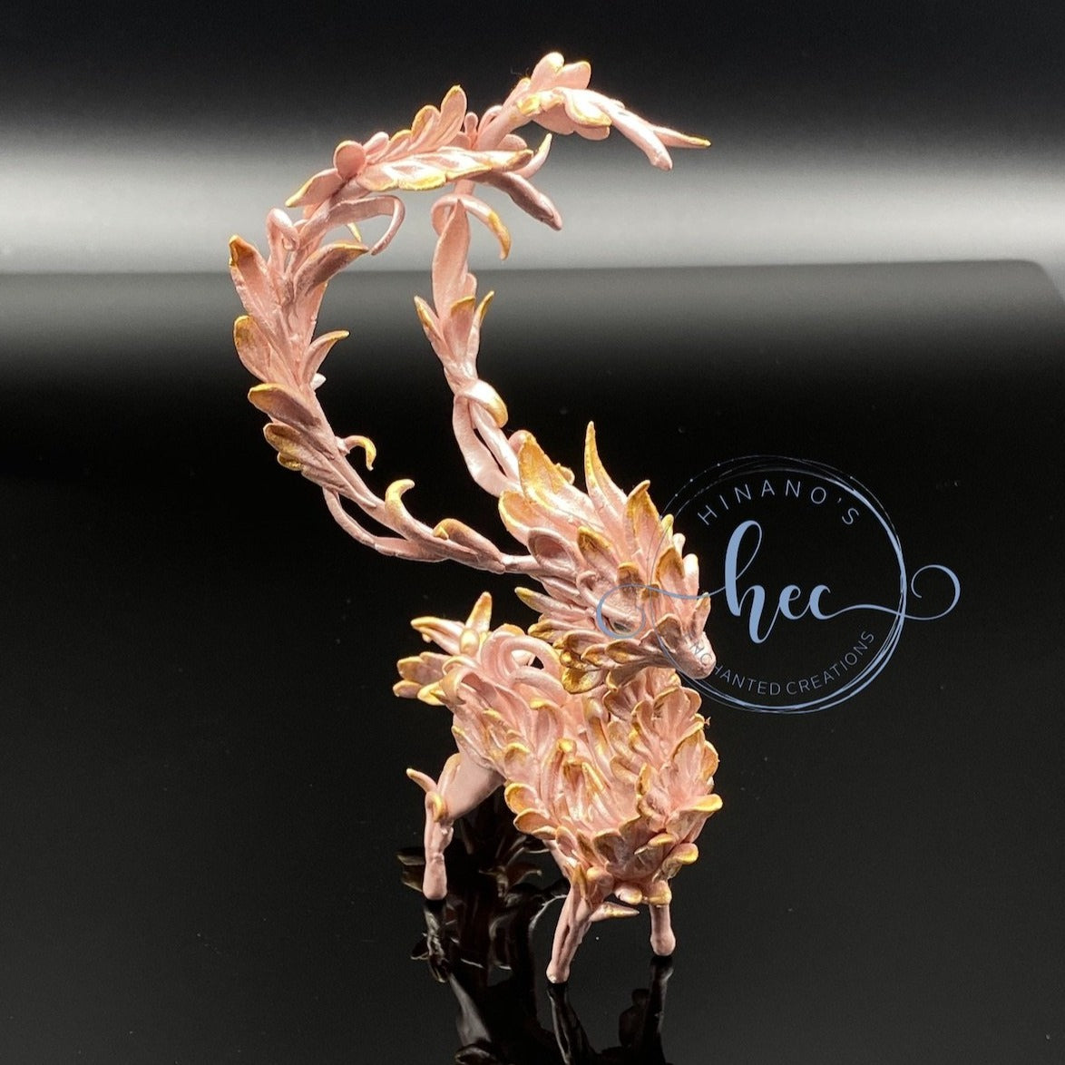 Forest Spirit Dragon in pearly pink hues and gold. She is one of the few sculpts I have created made entirely out of high quality air dry clay. Light as a feather but tons of details and shimmer that pictures cannot do justice to.