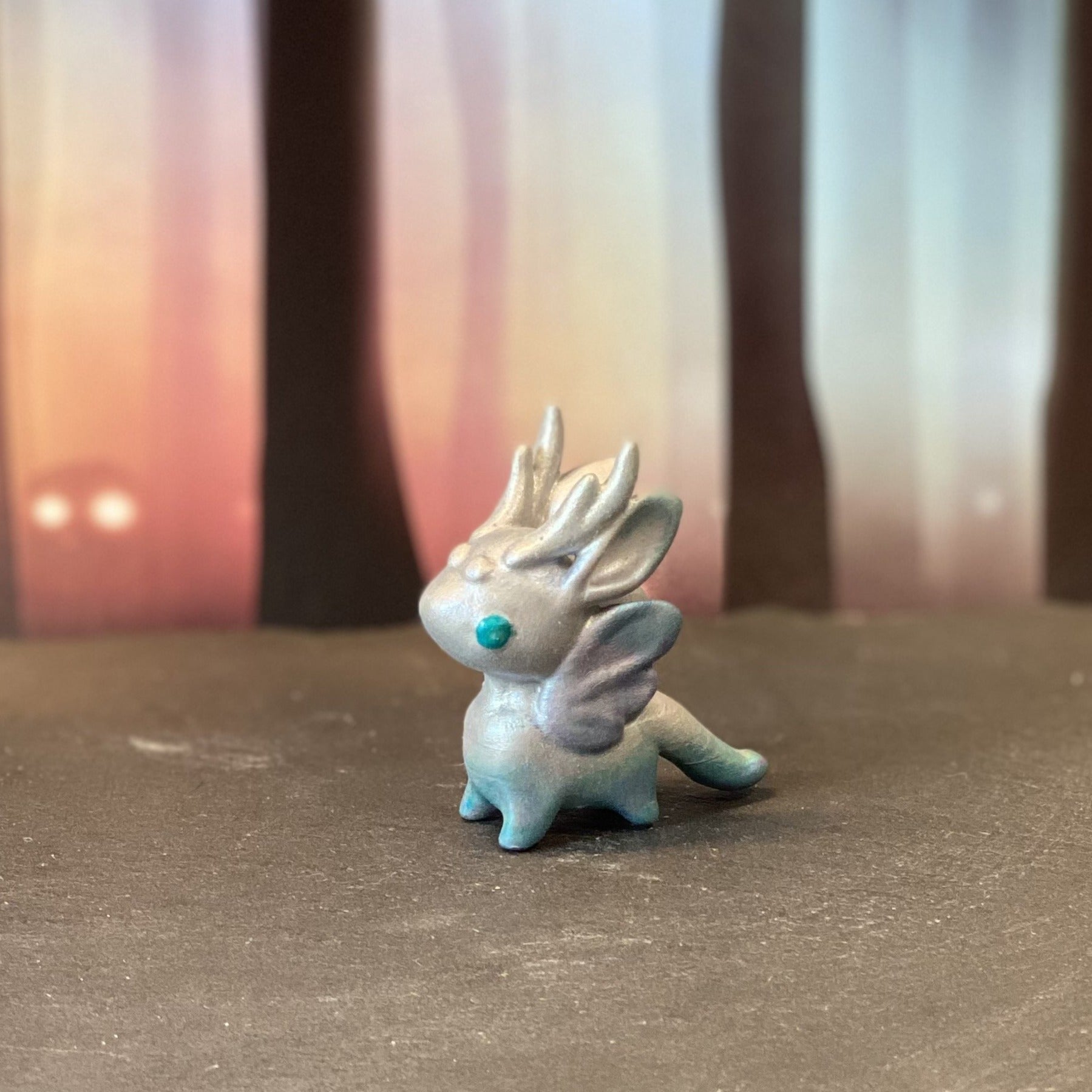 This Dragon Bun Bun is made out of 3D printed resin from a sculpt I made in Monster Clay. Its hand painted with Acrylic paints and either sprayed or painted with a sealant to protect the paint.