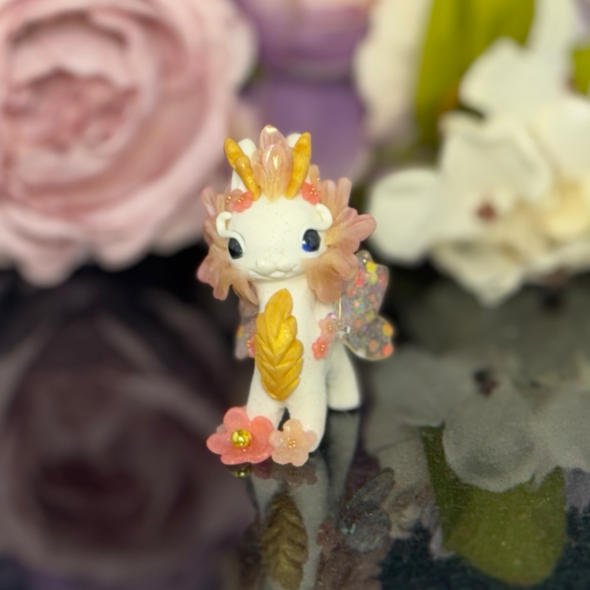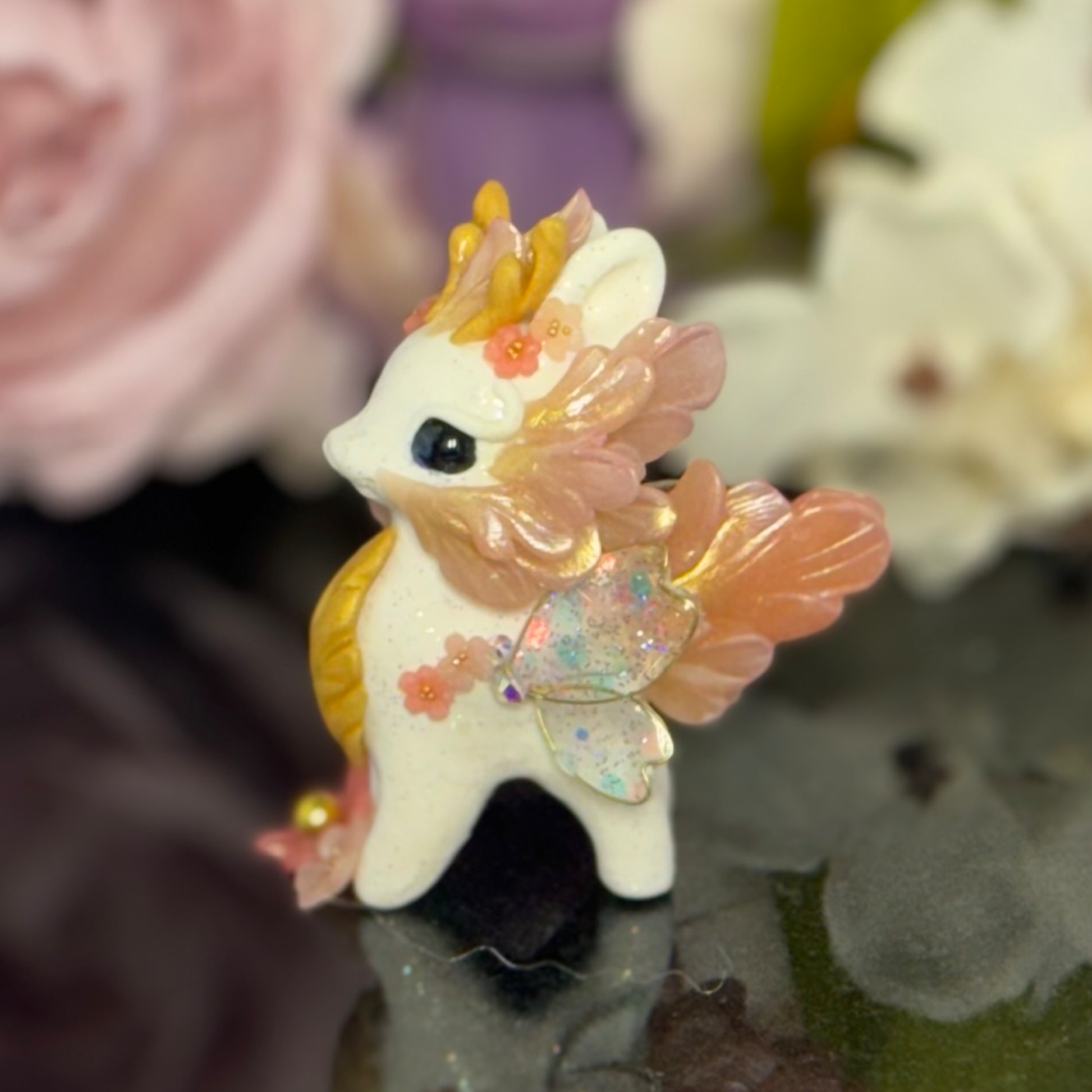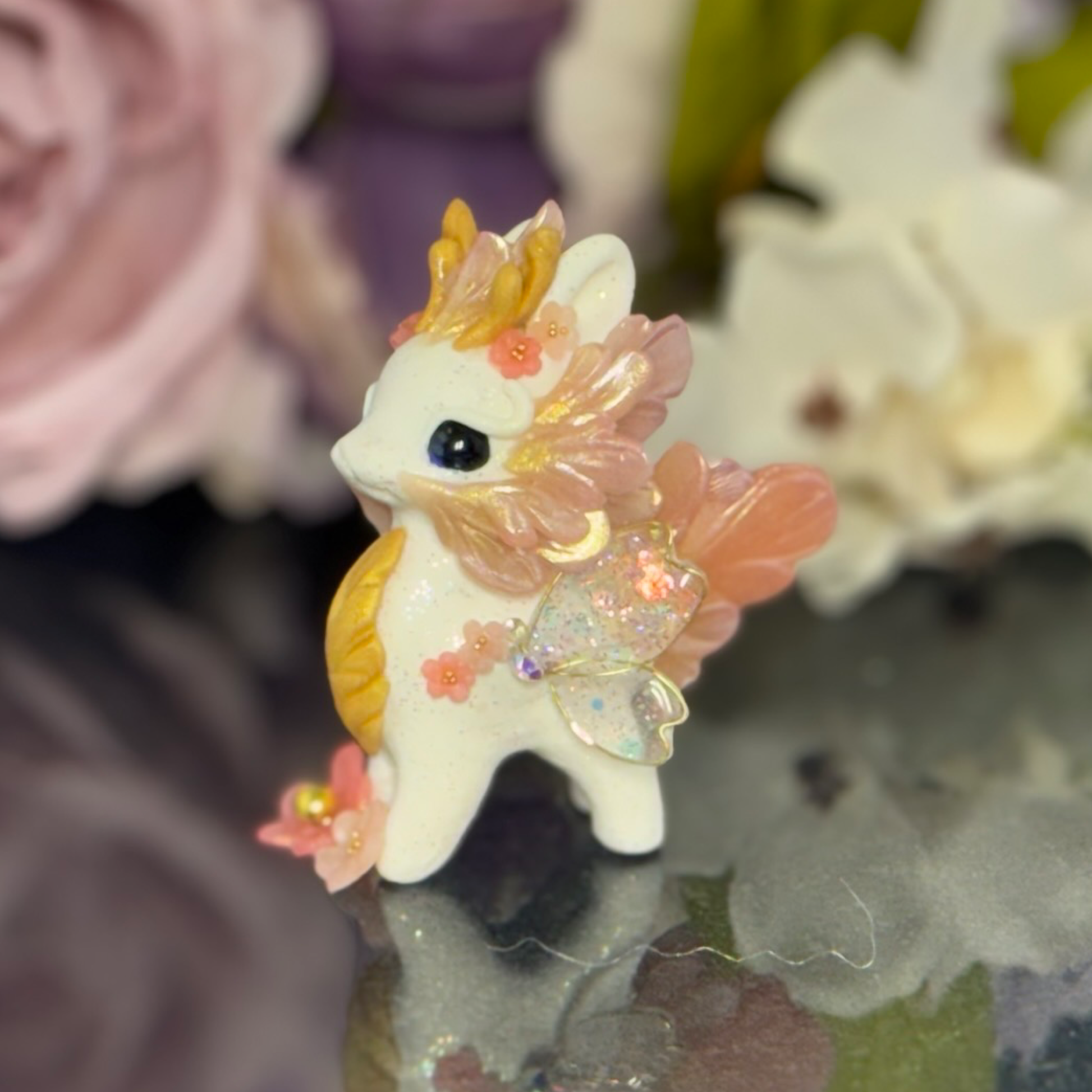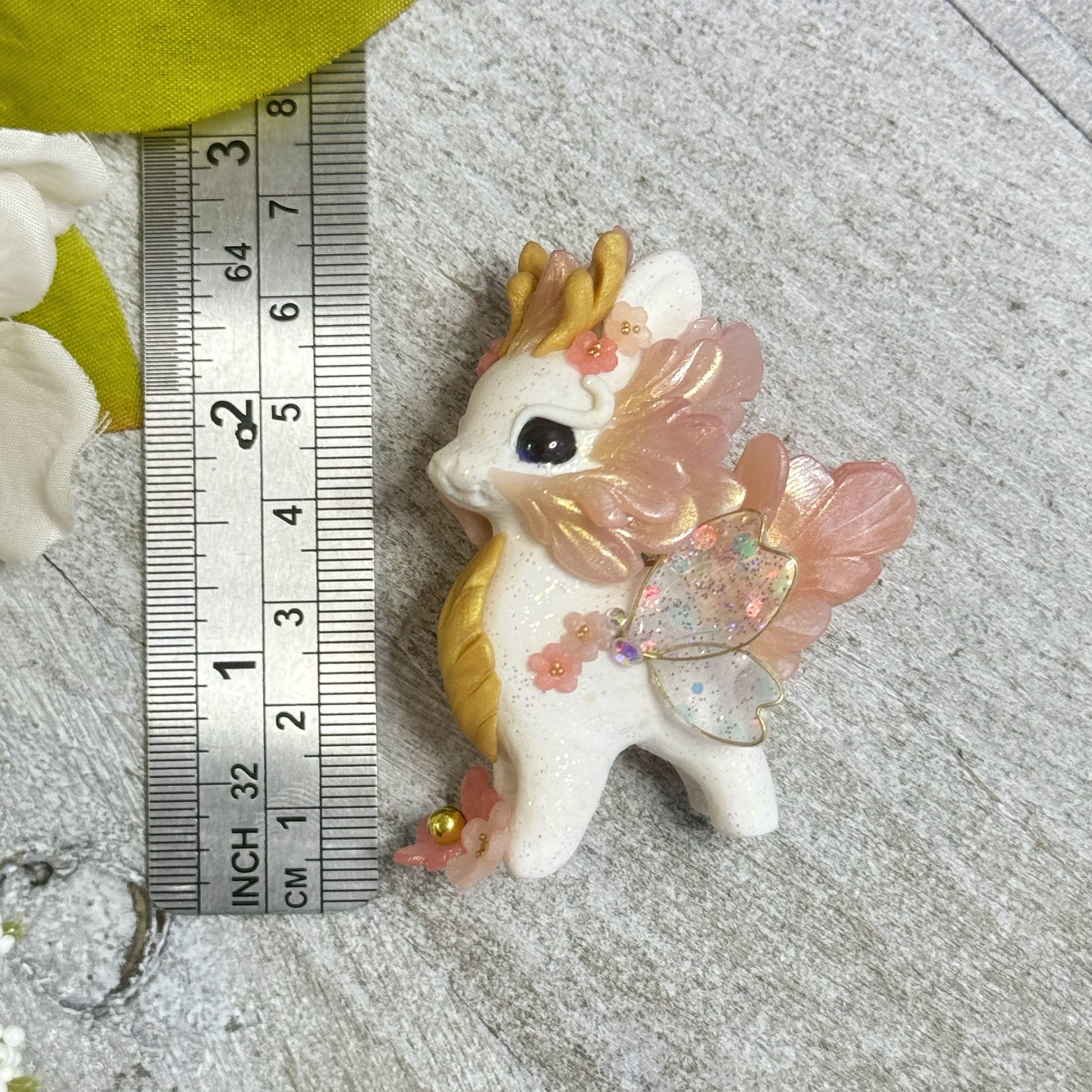 Meet the White and Translucent Pink Bunnigon, a charming blend of dragon and bunny magic! This adorable desk pet sparkles with Swarovski crystals and gold beads, while its glass bead eyes bring it to life. Crafted from polymer clay with delicate hand-made UV resin wings, it’s a whimsical companion that adds a touch of enchantment and fun to your workspace.