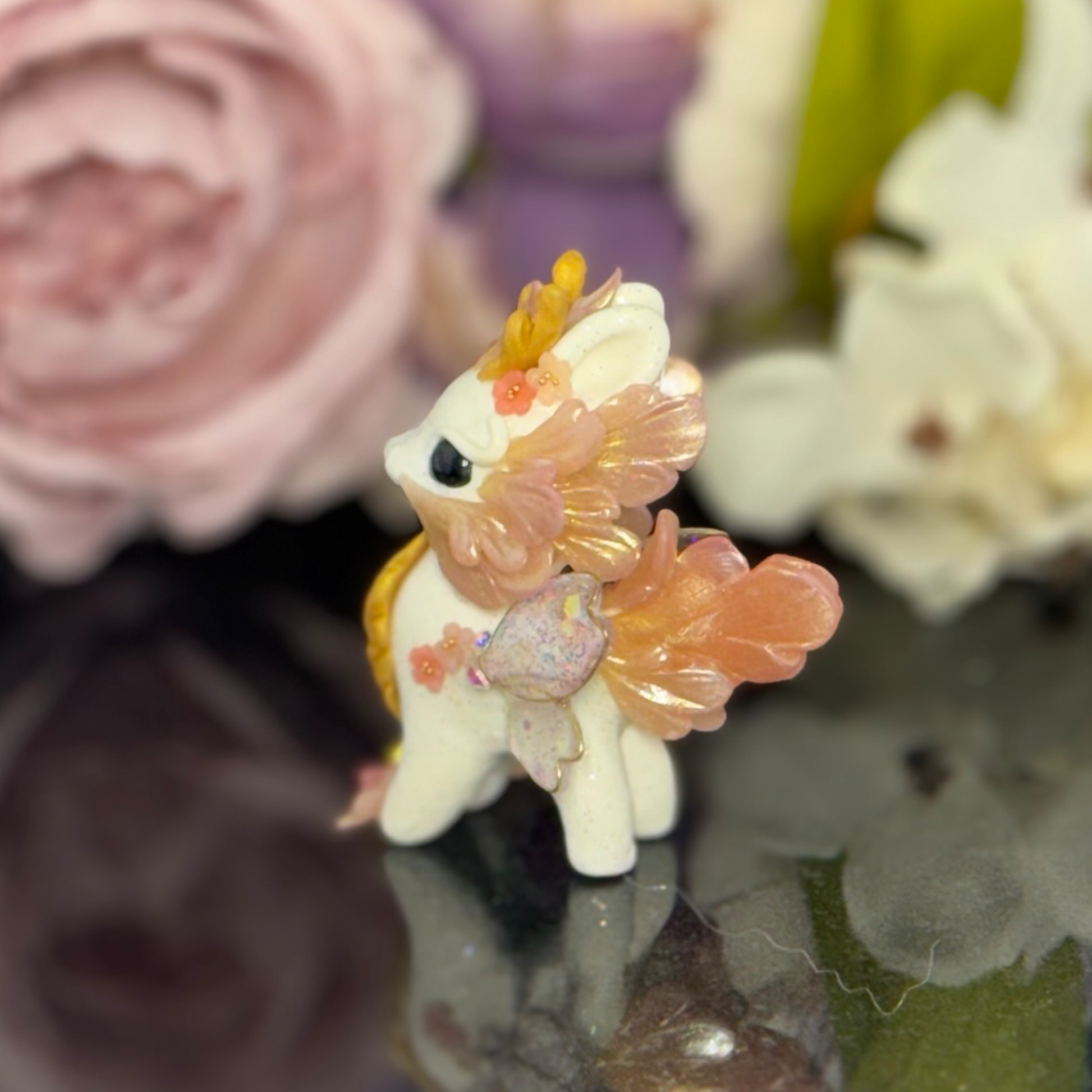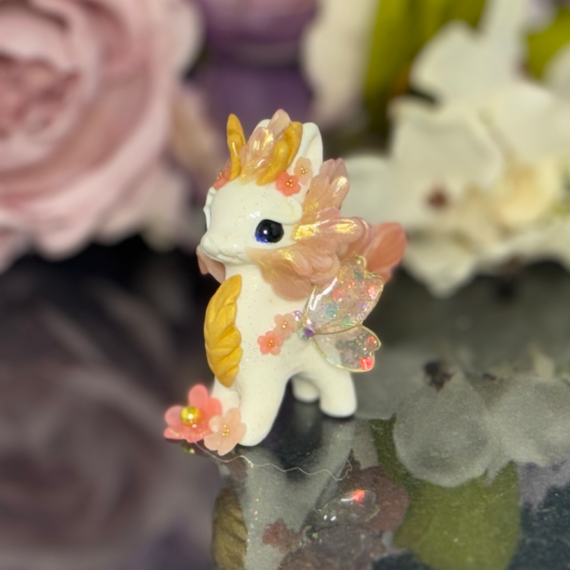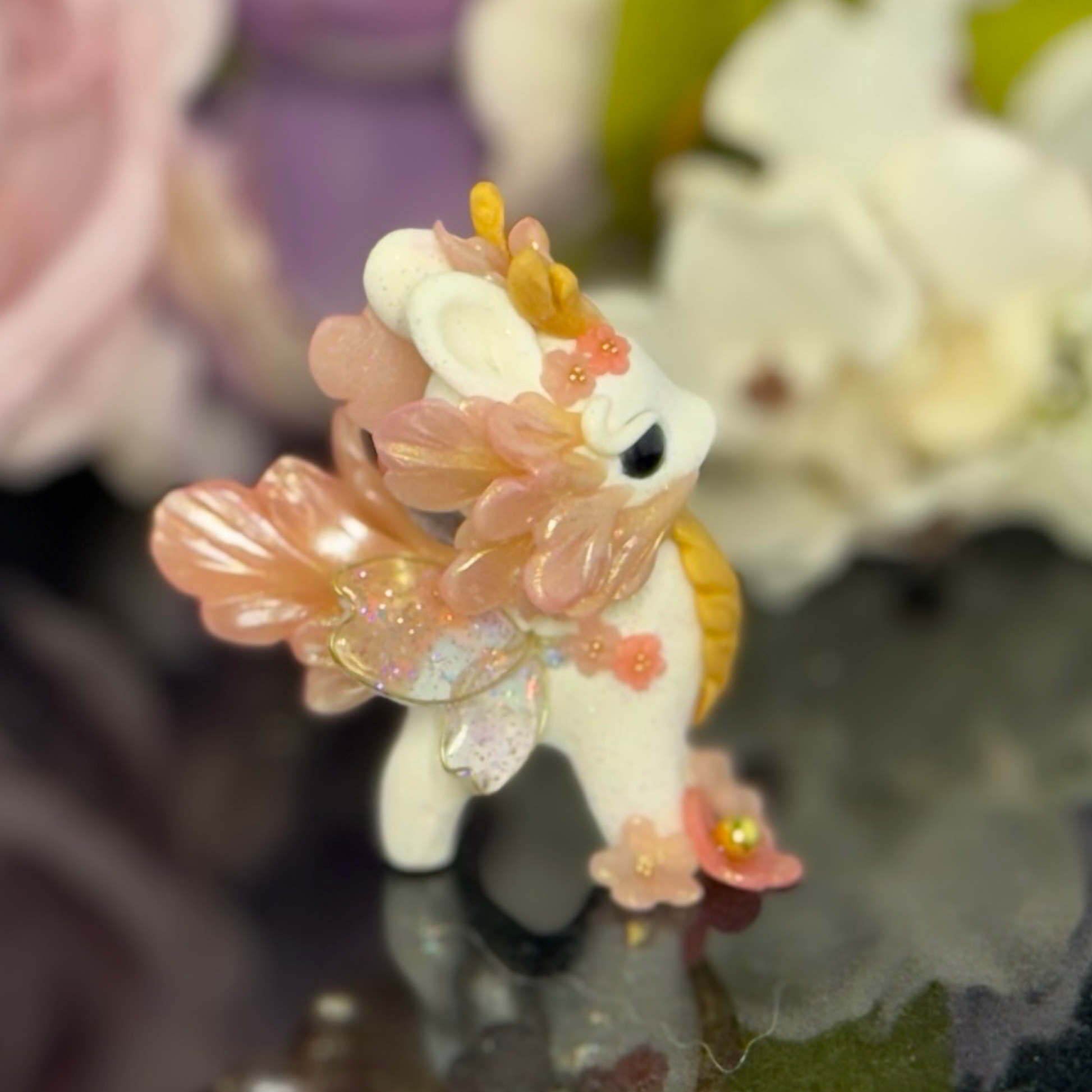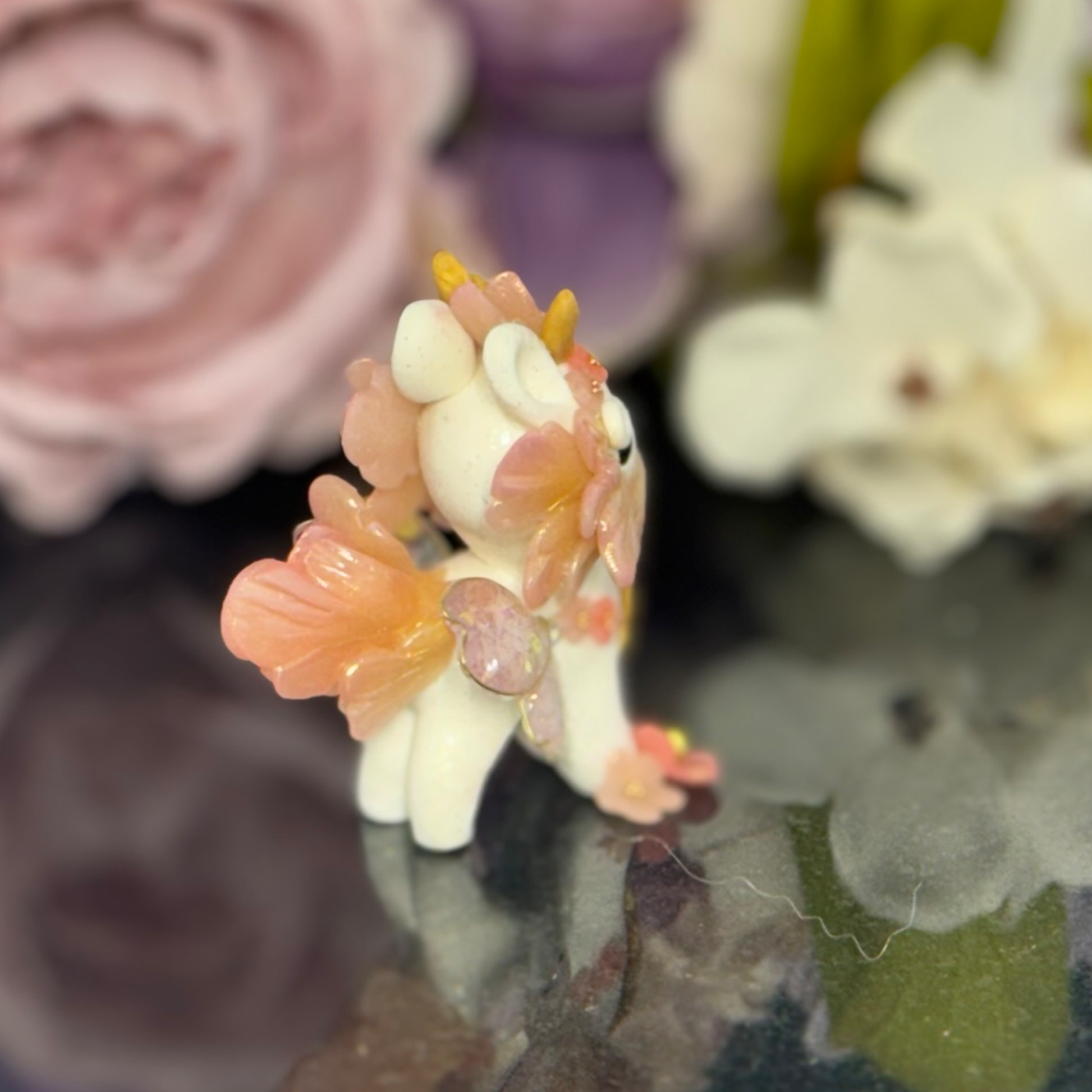 Meet the White and Translucent Pink Bunnigon, a charming blend of dragon and bunny magic! This adorable desk pet sparkles with Swarovski crystals and gold beads, while its glass bead eyes bring it to life. Crafted from polymer clay with delicate hand-made UV resin wings, it’s a whimsical companion that adds a touch of enchantment and fun to your workspace.